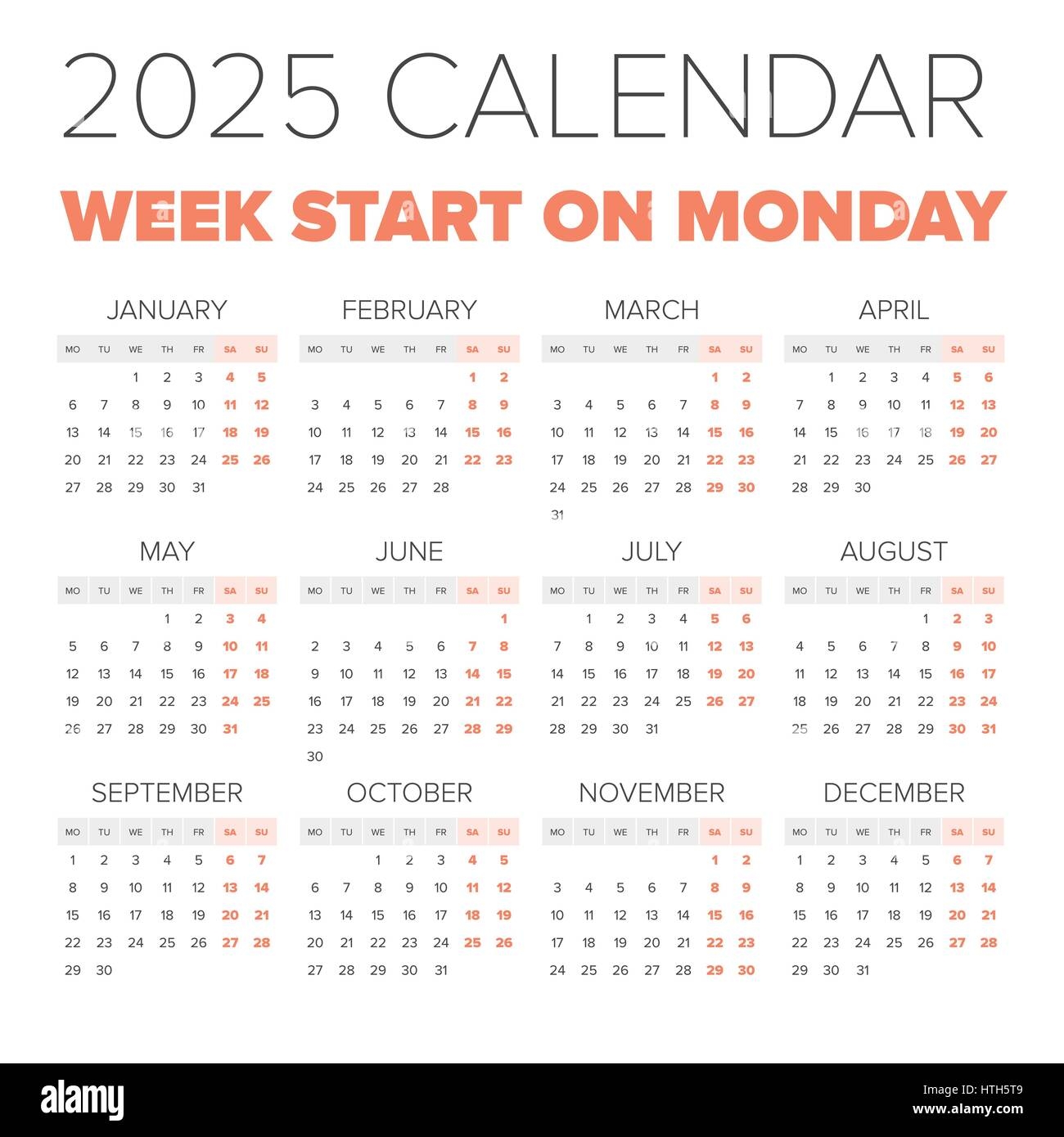 Simple 2025 Year Calendar Week Starts On Monday Stock Vector Image Art Alamy