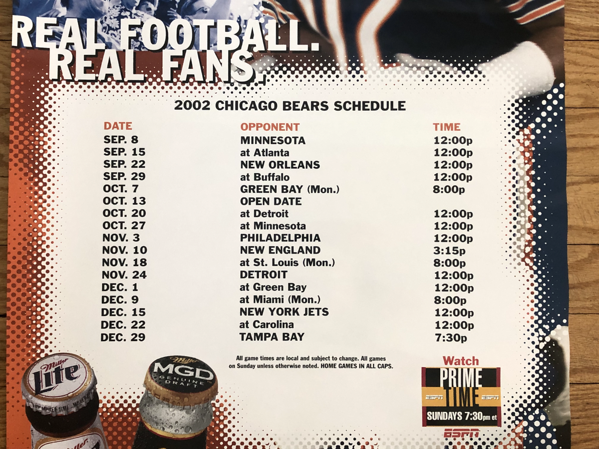 Chicago Bears Schedule Poster Miller Lite Beer U0026 ESPN 26×18 NFL Football Gift EBay