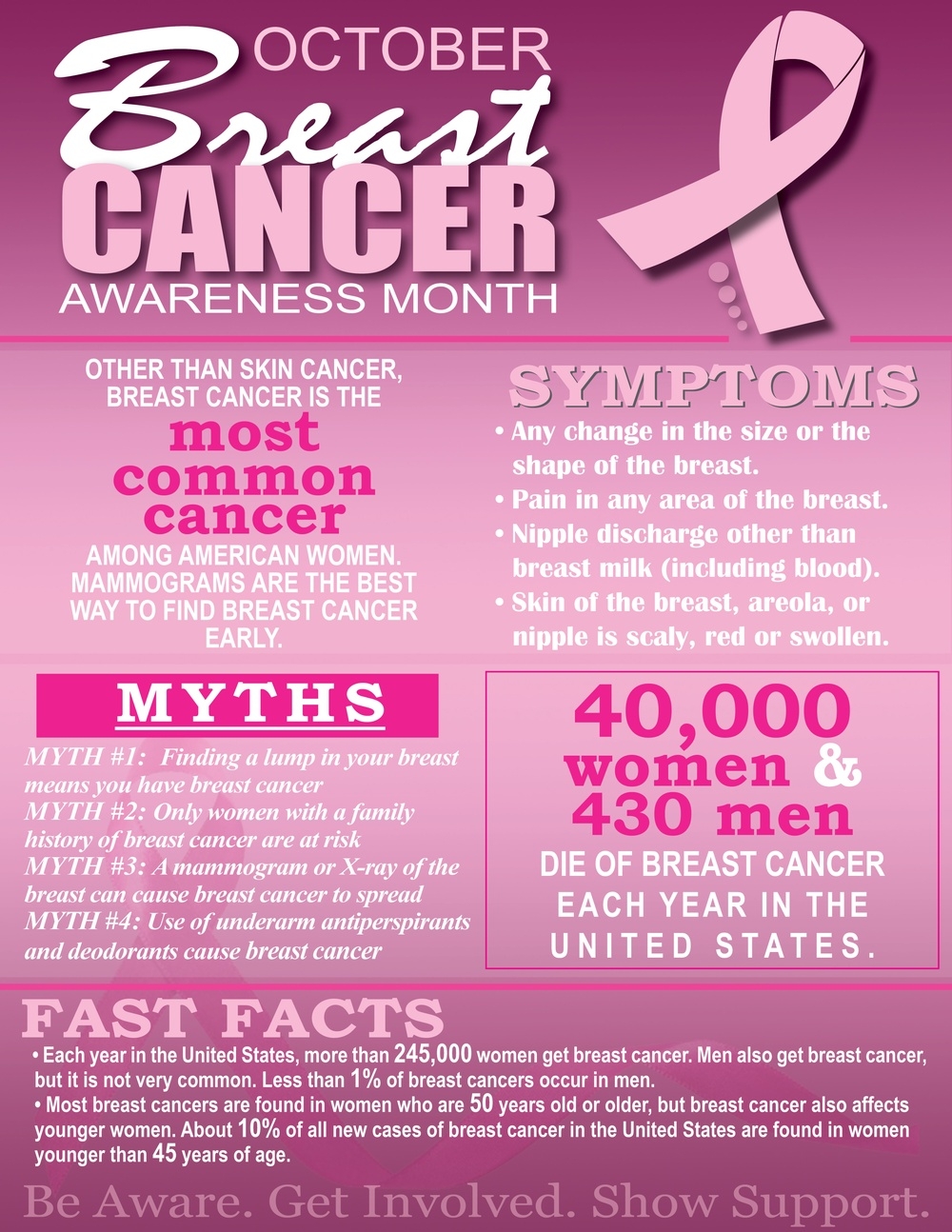 Spread the word this Breast Cancer Awareness Month by sharing printable information with your community. Together, we can make a difference in raising awareness, promoting early detection, and supporting those affected by breast cancer.