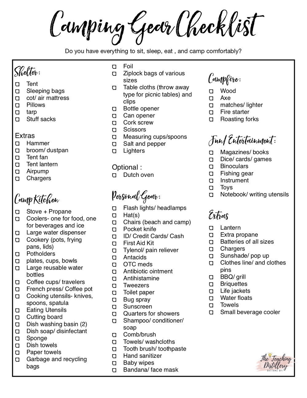 Whether you’re a seasoned camper or new to the great outdoors, having a checklist can help ensure you don’t forget anything important. Our camping list printable includes all the must-haves for a successful and enjoyable camping experience.