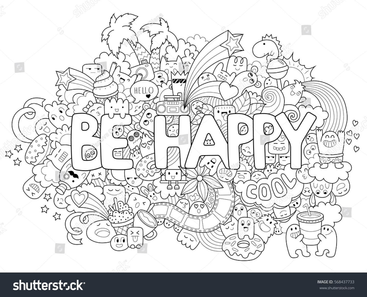 Printable Coloring Page Adults Cartoon Characters Stock Vector Royalty Free 568437733 Shutterstock