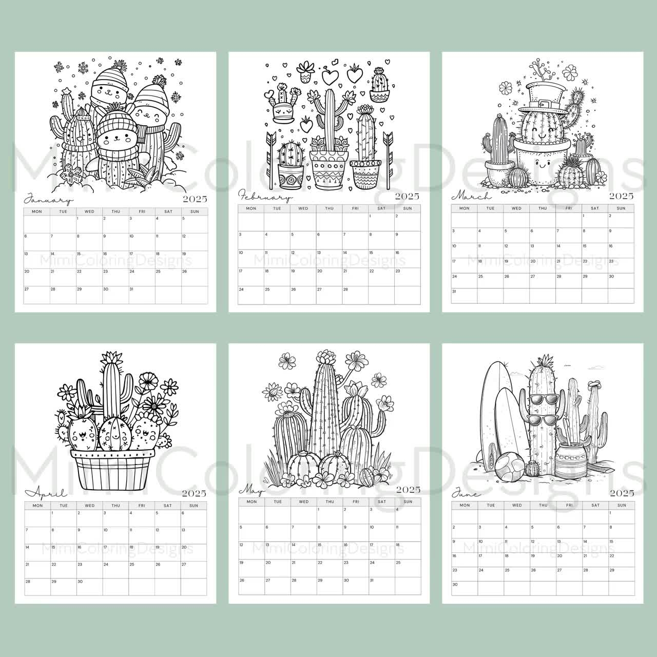 Cactus Coloring Calendar 2025 Printable 2025 Monthly Planner Cactus Calendar Cactus Lover Gift Wall Calendar Printable PDF Etsy