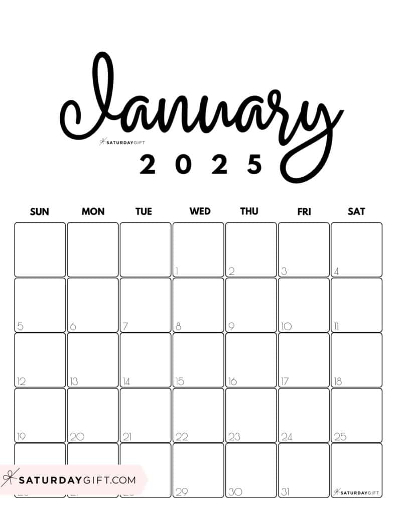 January 2025 Calendar 20 Cute FREE Printables SaturdayGift