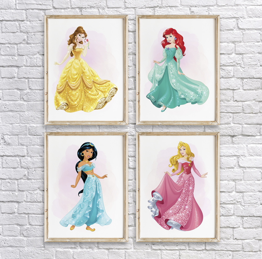 Disney Princesses DIY Wall Art Room Decor Printable Set Of 4 Dgtally