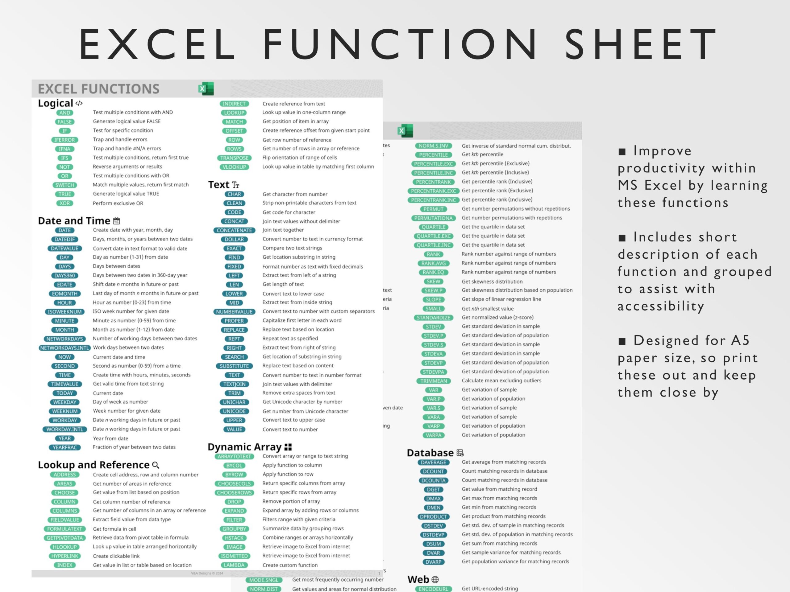 Microsoft Excel Functions Printable Excel Cheat Sheet Workbook Productivity Excel Formulas Windows Mac Excel Ninja Green Etsy Hong Kong