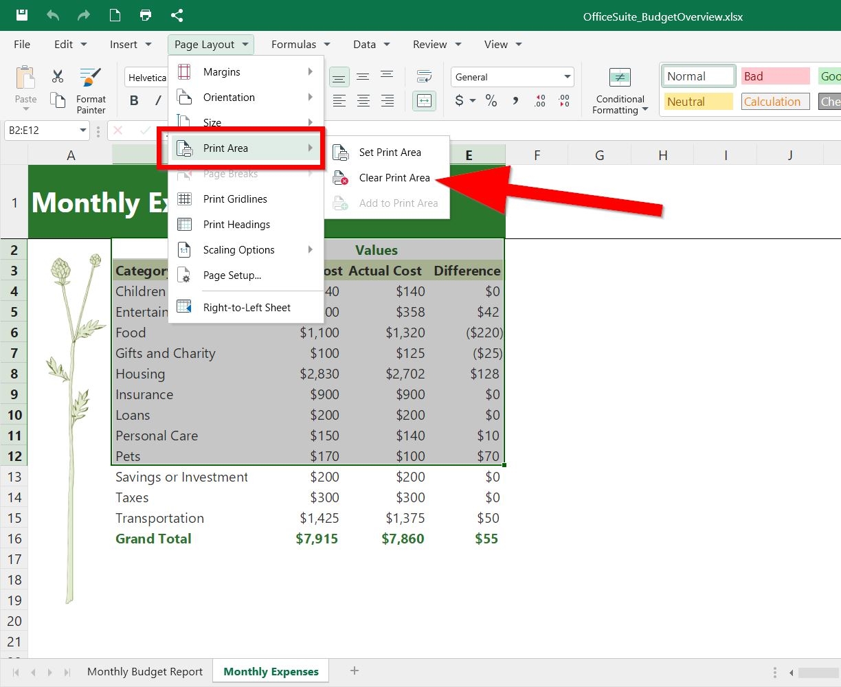 Set Clear Print Area Sheets MobiSystems