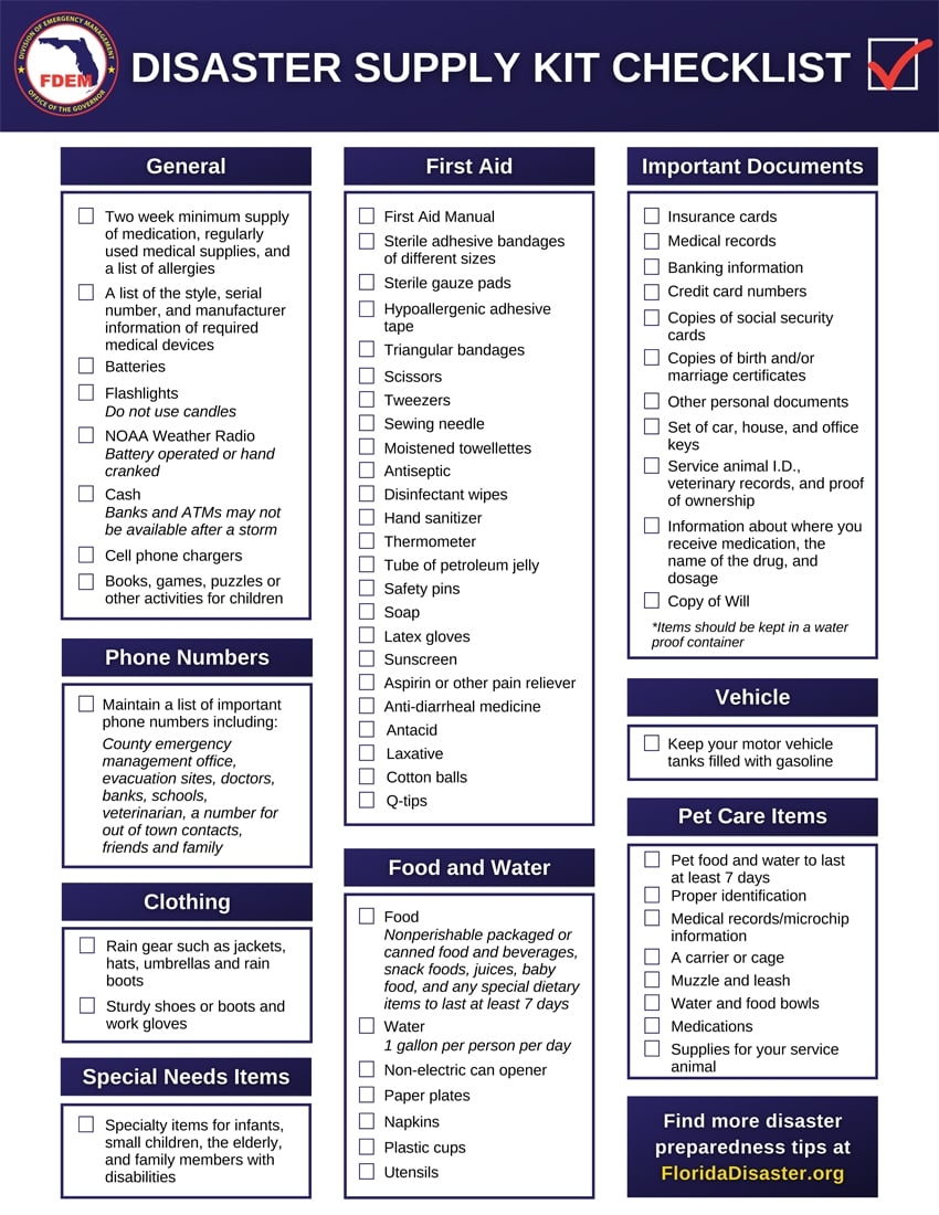 Disaster Supply Kit Checklist Florida Disaster