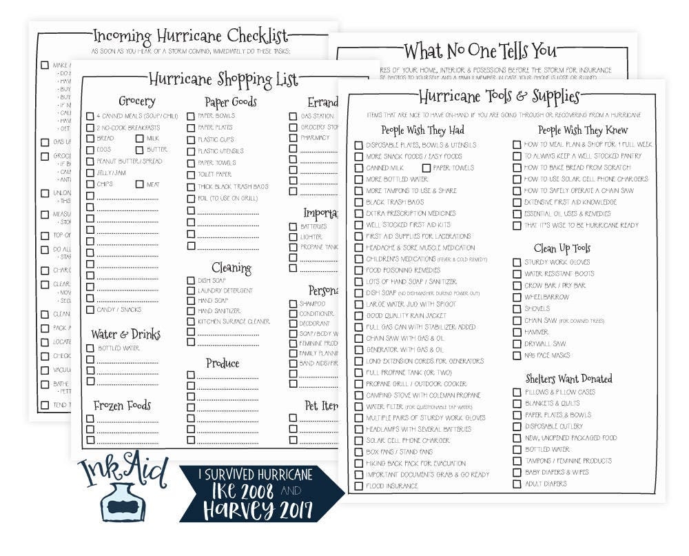 HURRICANE Prep Printable Checklists Print Your Own Storm Preparation Supplies PDF Files Prepare For Tropical Cyclone Emergency Etsy