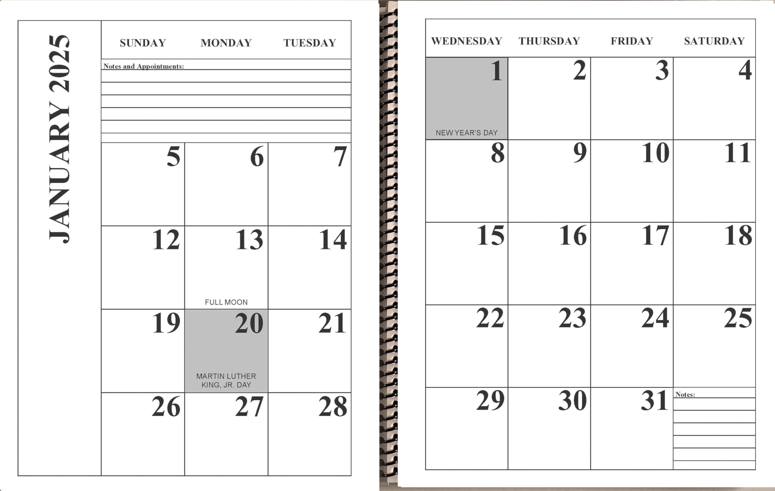 Amazon Jumbo Large Print Desktop Calendar 2025 Heavy Weight Paper Tough Calendar 17 X 11 Opened Up Or Closed It Is 11 X 8 5 13 months January 2025