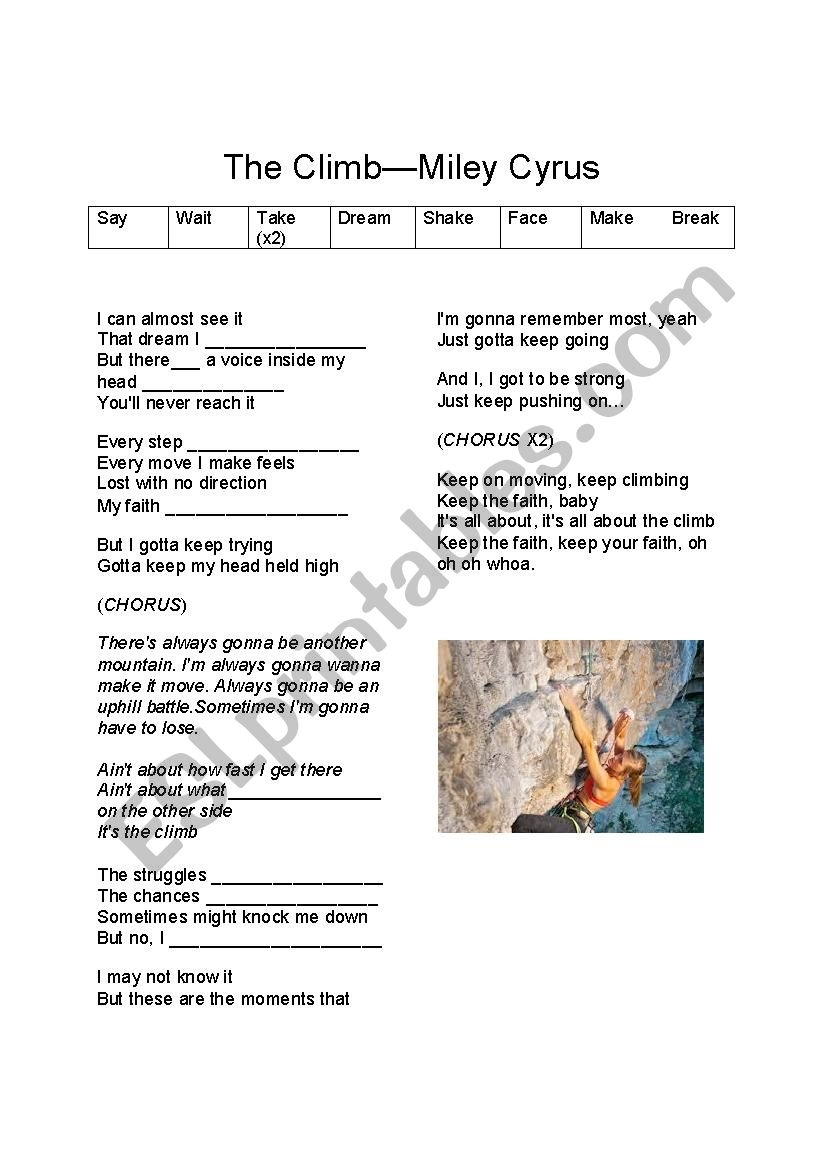 Miley Cyrus The Climb ESL Worksheet By ViolaP22