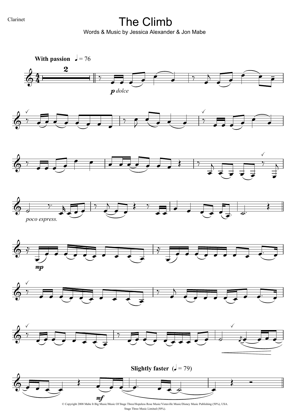 The Climb from Hannah Montana The Movie By Miley Cyrus Sheet Music For Clarinet Solo At Sheet Music Direct