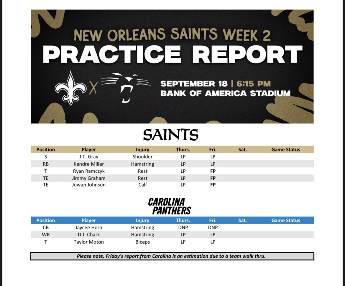 Saints Injury Report Kendre Miller And JT Gray Limited At Practice Friday WGNO