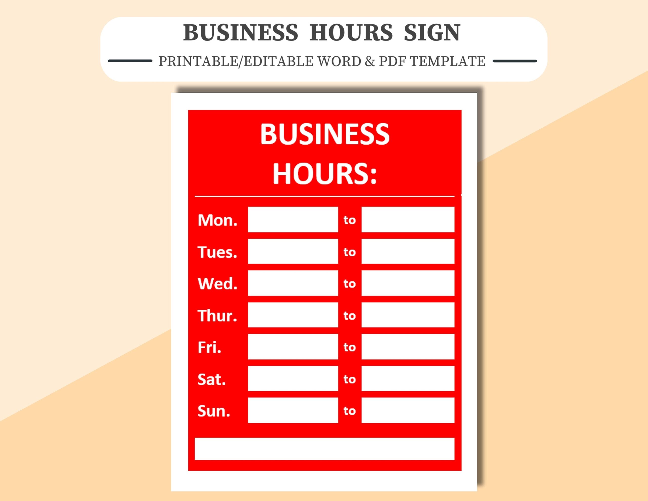 Business Hours Sign Printable editable Word U0026 PDF Template Store Hours Sign Etsy