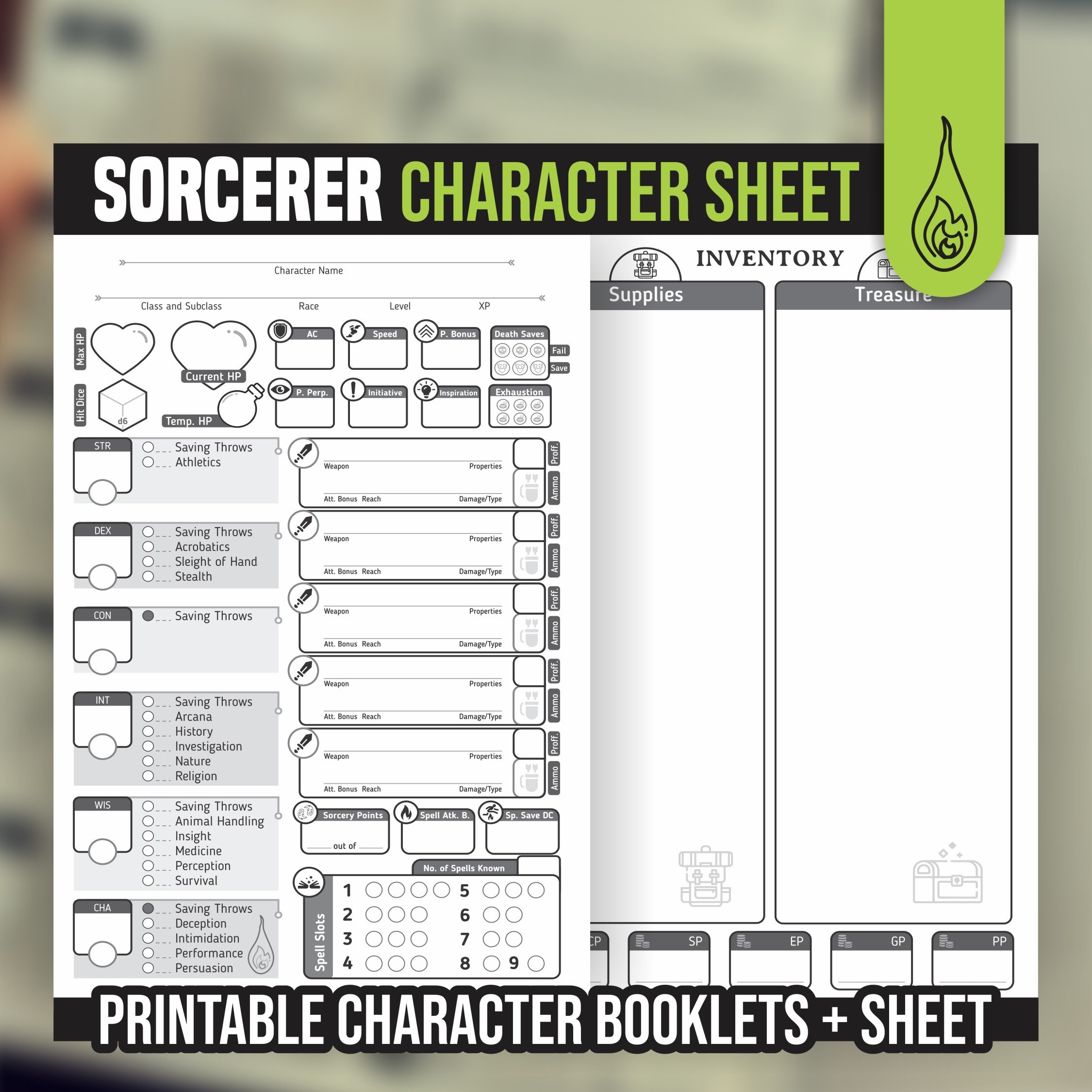 SORCERER CHARACTER SHEET For DnD 5e Form Fillable Pdf Dungeons And Dragons Printable Character Sheet Du0026D DnD Character Journal