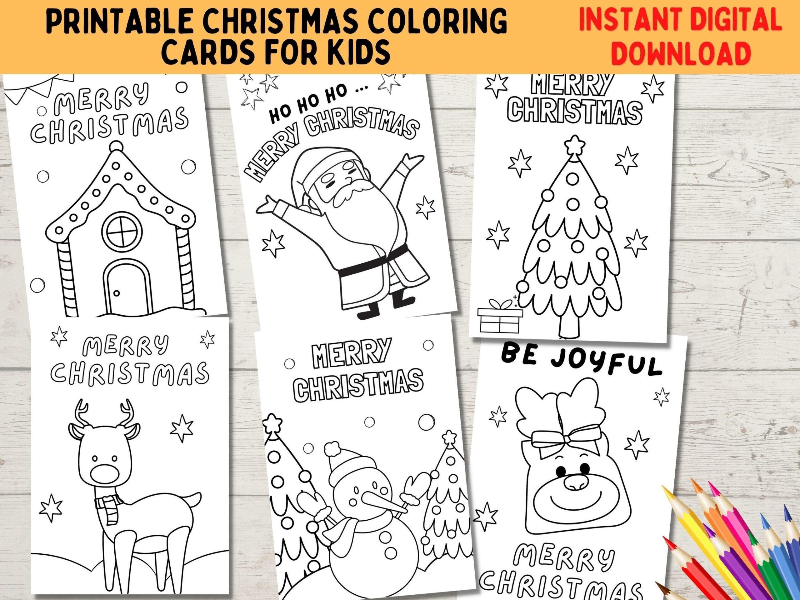 Cute Christmas Coloring Cards For Kids Printable Christmas Cards To Color Christmas Activity For Kids Toddler Christmas Cards DIY Gifts Etsy