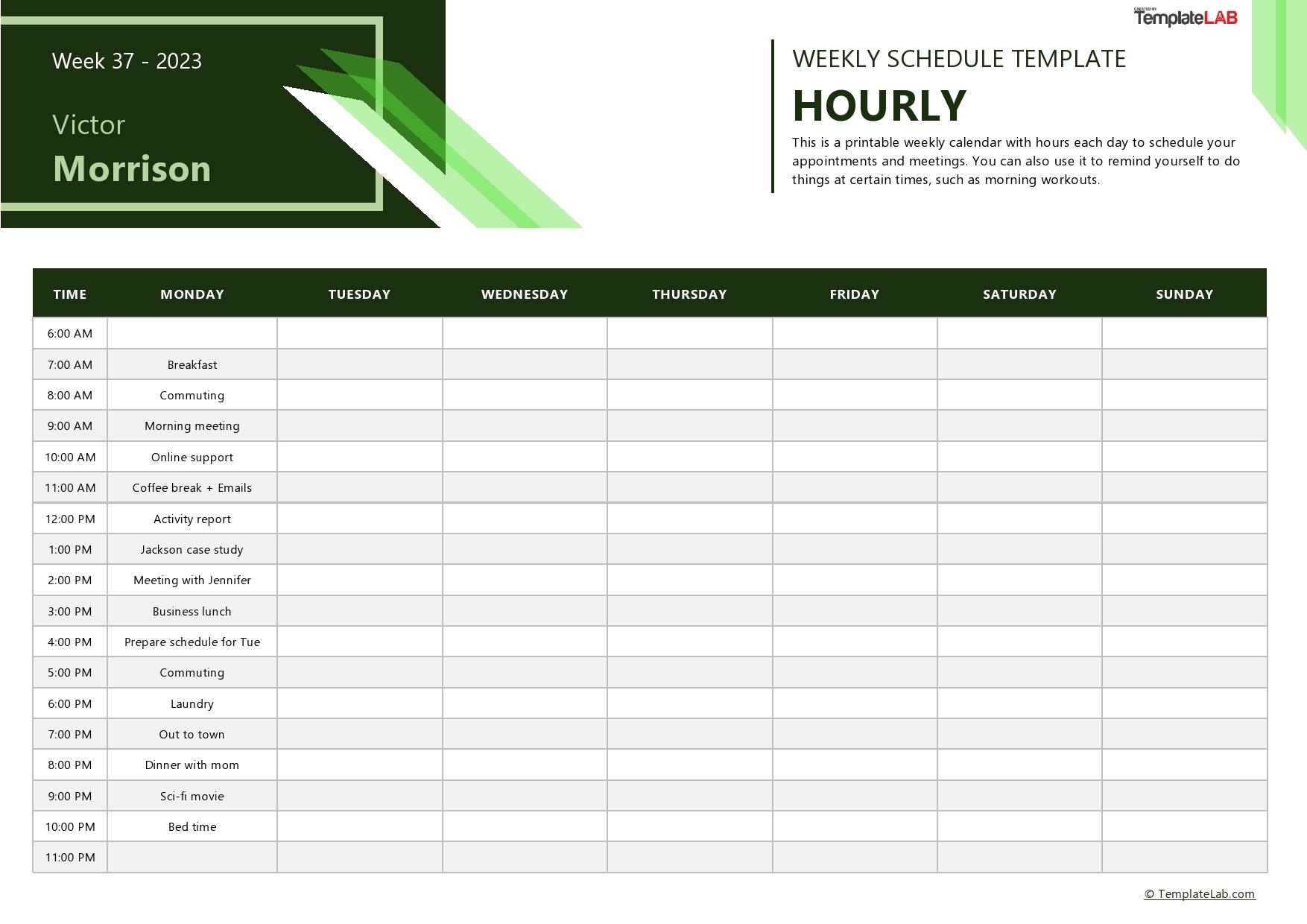Free Printable Hourly Planner Template
