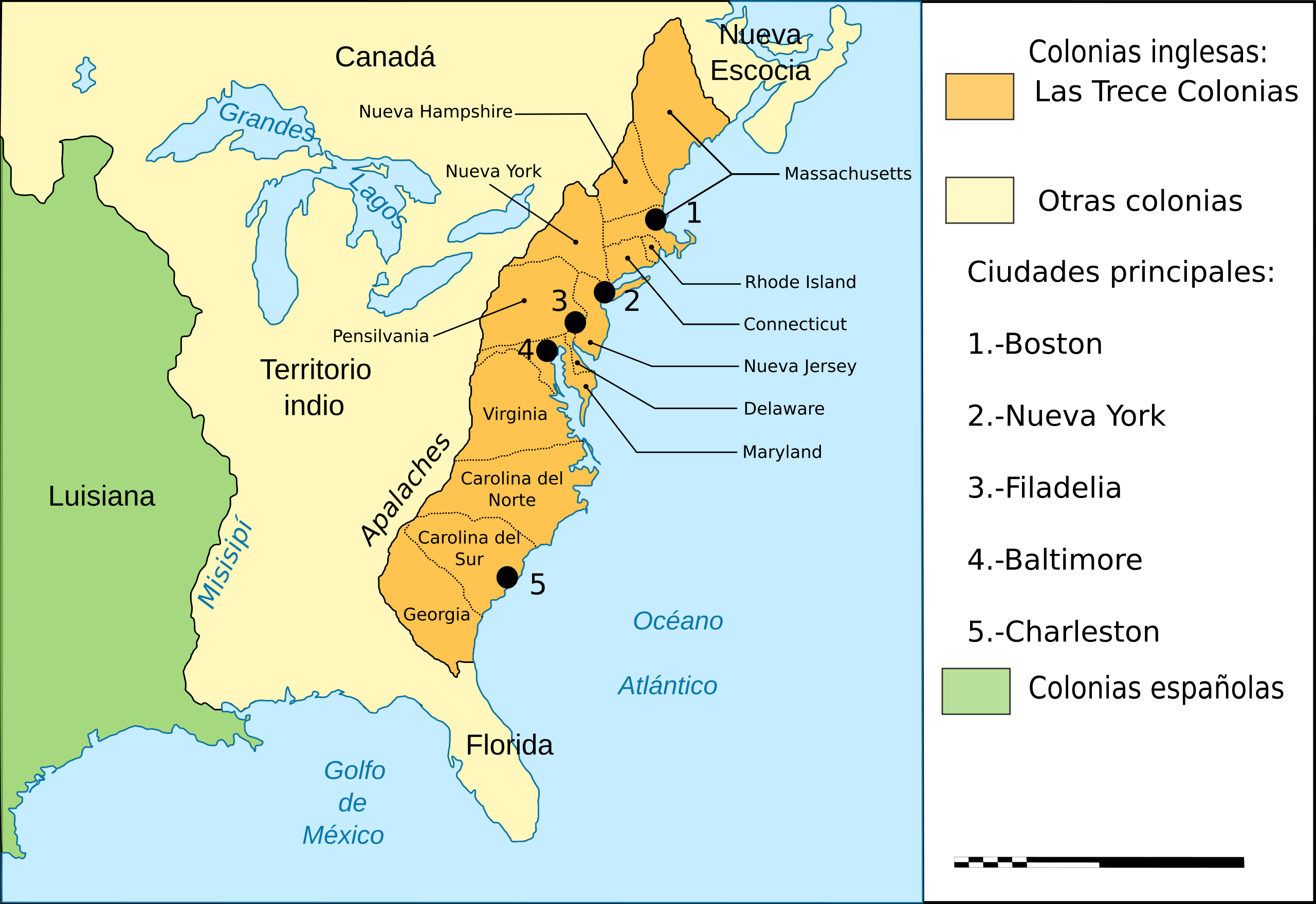 File Map Thirteen Colonies 1775 es svg Wikimedia Commons