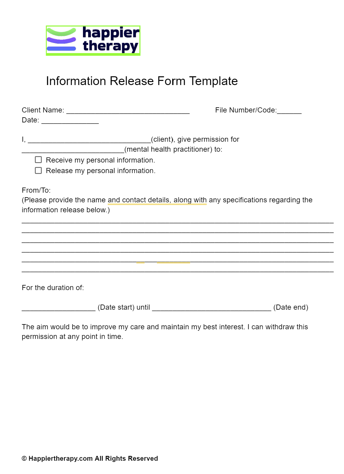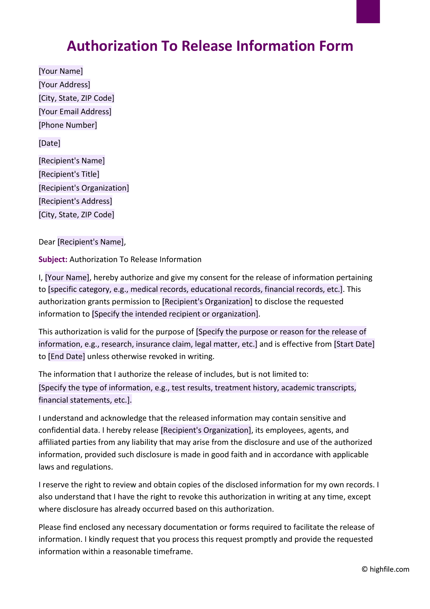 Authorization To Release Information Form Word PDF Google Docs Highfile