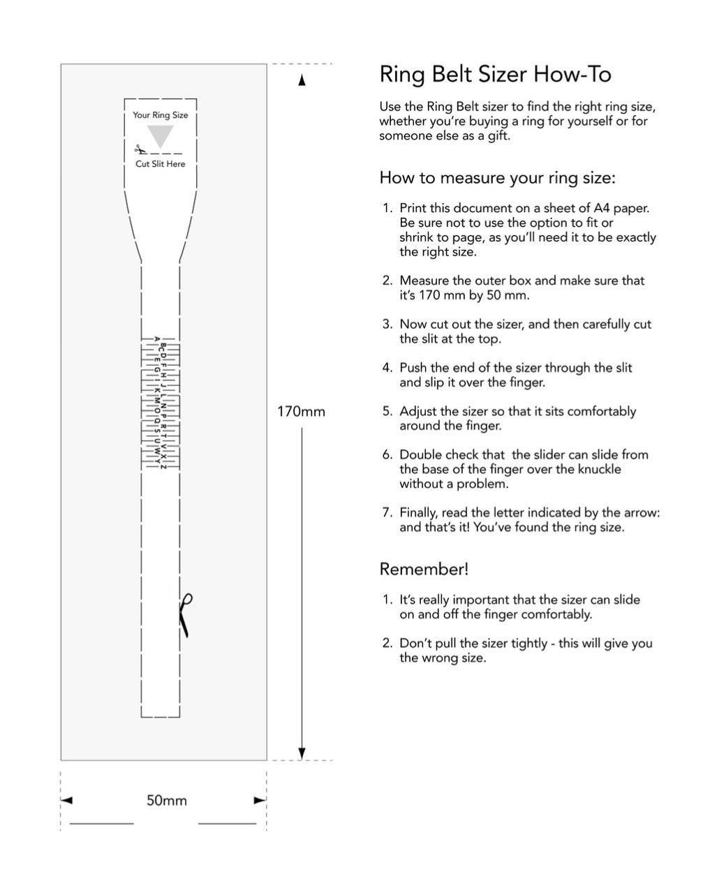 Simply download and print out the ring measure printable template. Make sure to follow the instructions carefully to ensure accurate results. Once you have the template in hand, wrap it around your finger and mark where it overlaps. This will give you an idea of your ring size.