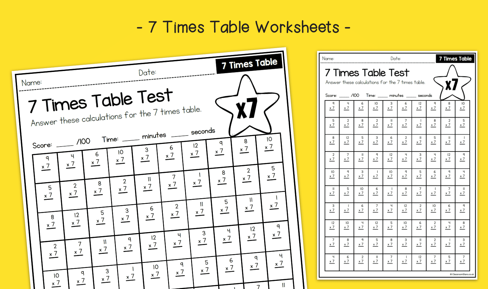 7 Times Table Speed Test Activity Worksheets KS2 Multiplication Primary Maths