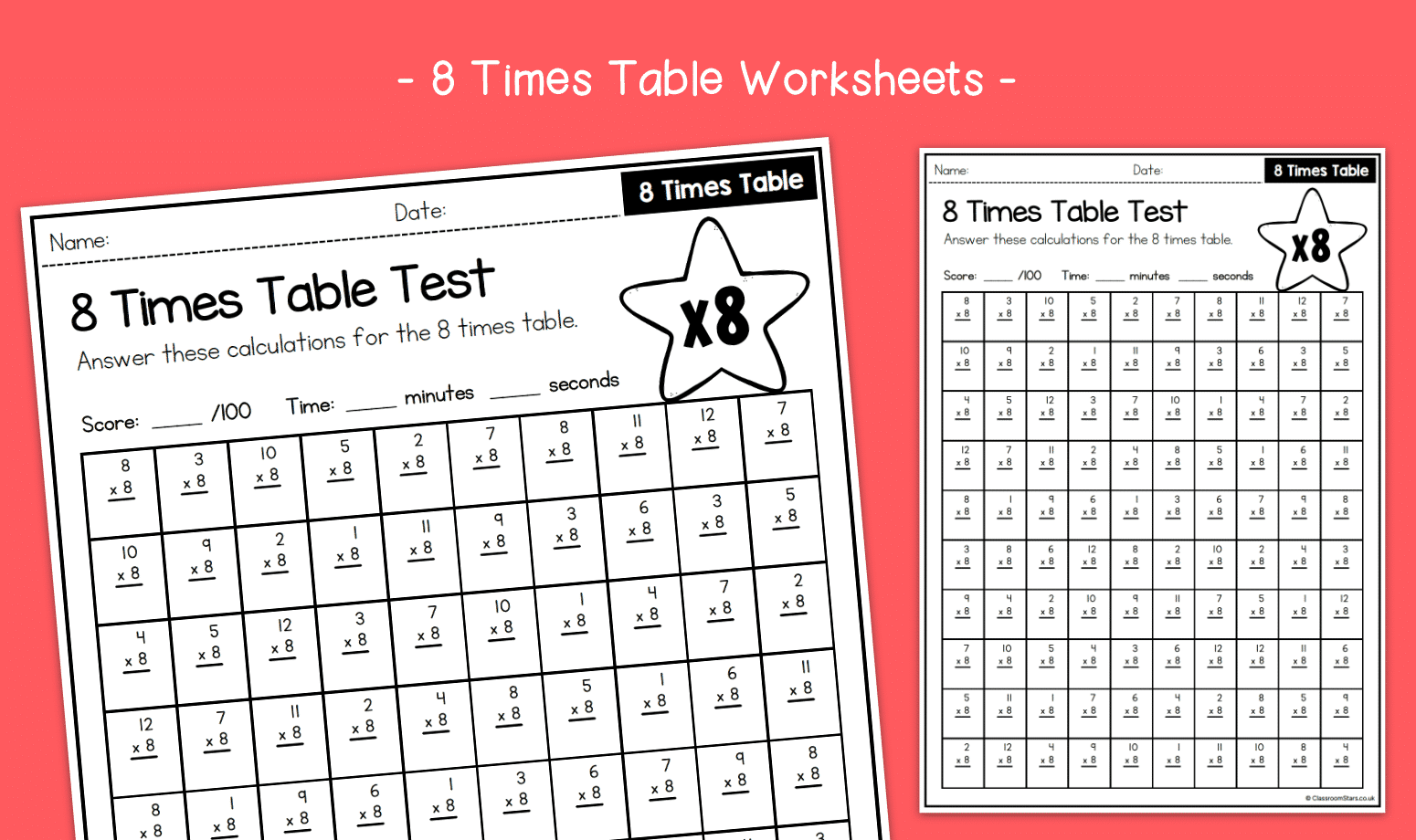 8 Times Table Speed Test Activity Worksheets KS2 Multiplication Primary Maths