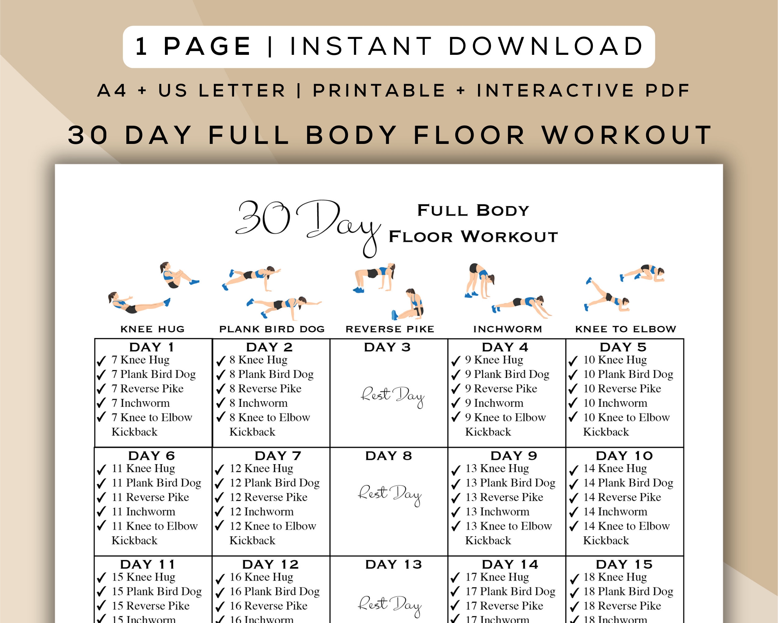 30 Day Full Body Floor Workout Printable Interactive PDF Easy To Follow Beginner Friendly Digital Home Workout Guide A4 US Letter Etsy Canada