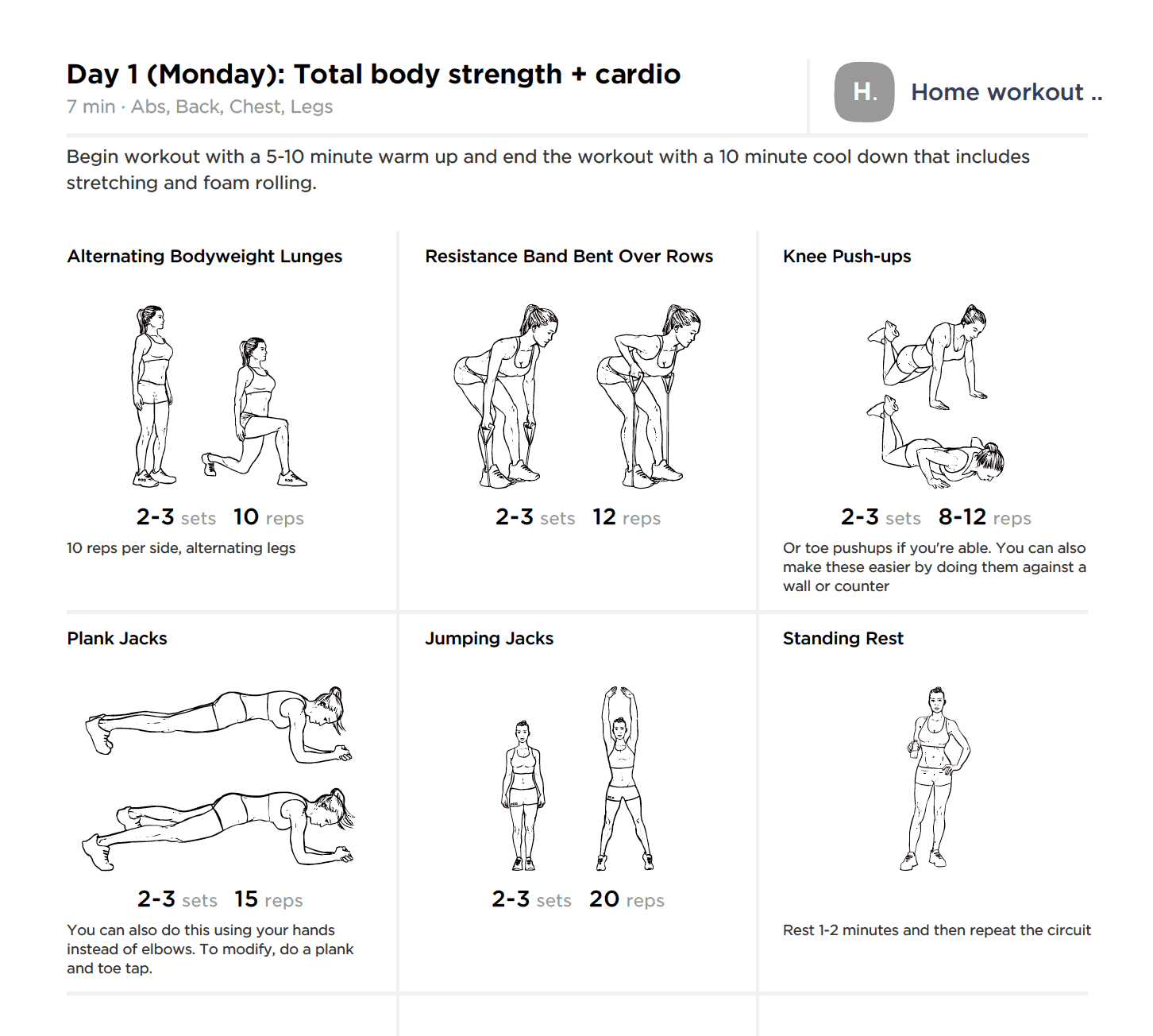 Free Printable 7 Day Home Workout For Weight Loss